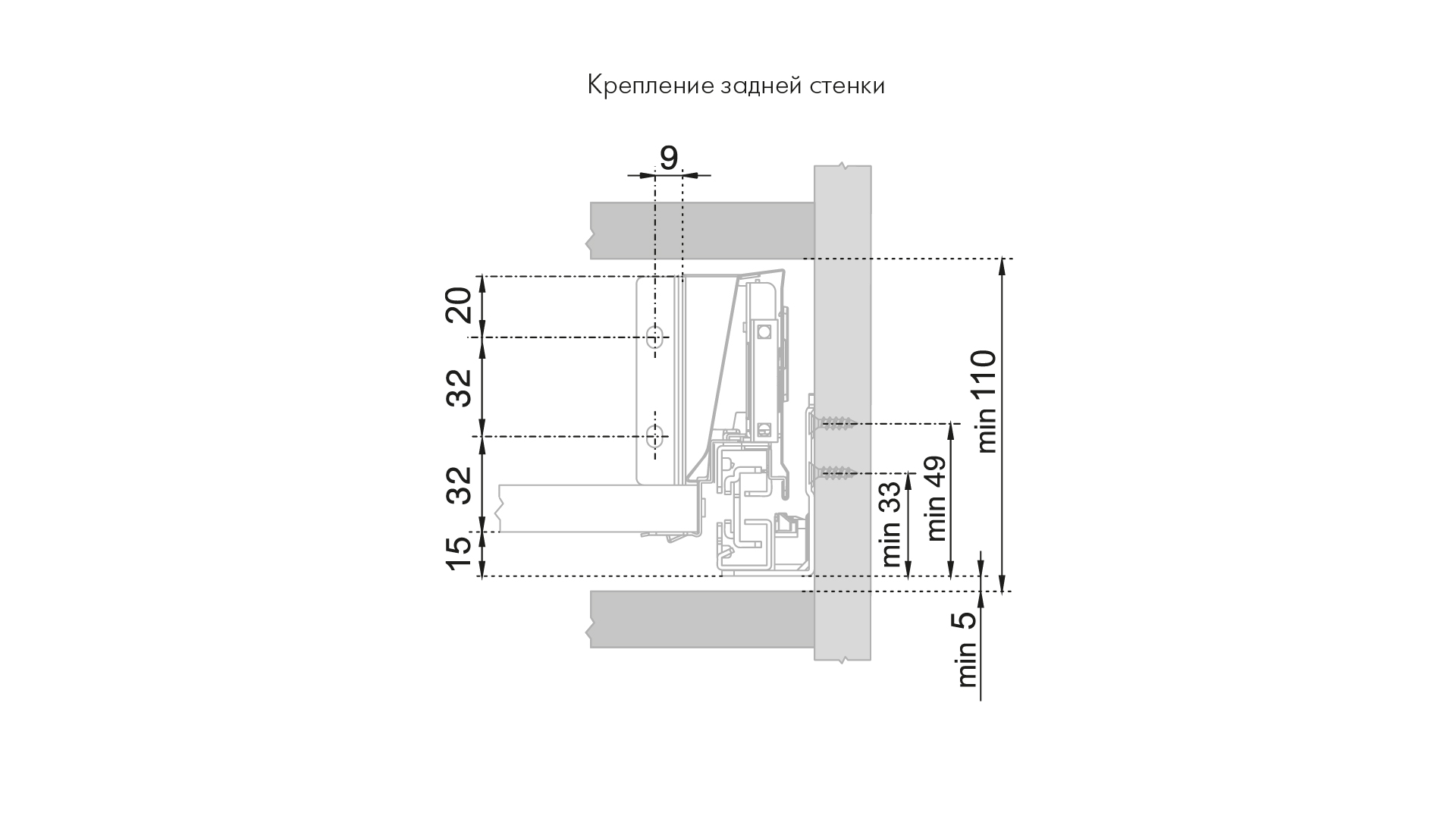 Держатель внутреннего ящика СТАРТ для любых боковин КЛИК SBH100/GR