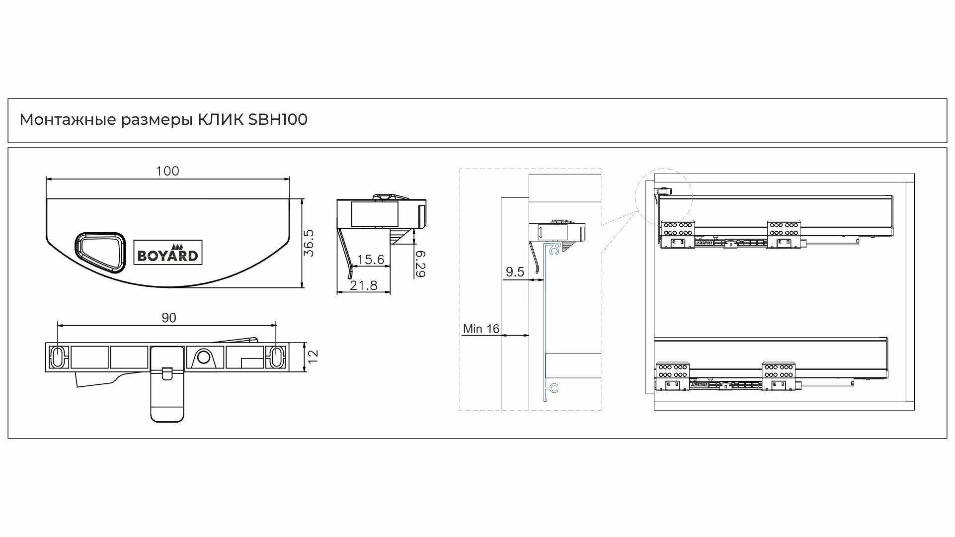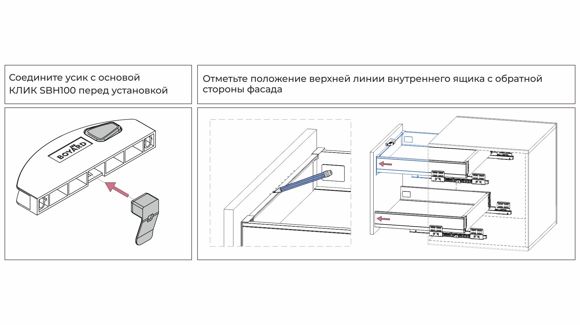 Держатель внутреннего ящика СТАРТ для любых боковин КЛИК SBH100/GRPH