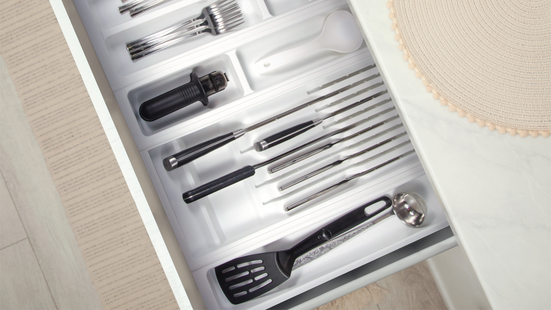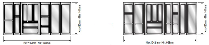 Представляем новую линейку наборных вкладышей для выдвижных кухонных ящиков, способных заполнить внутреннее пространство ящика любой ширины.