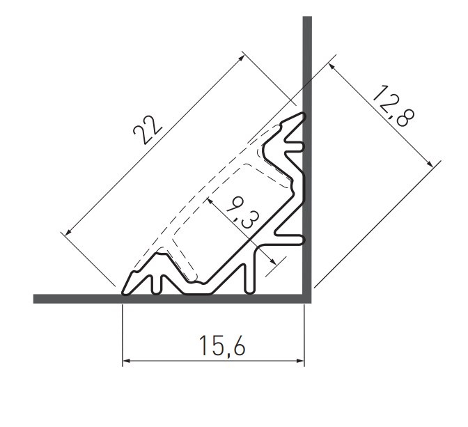 Алюминиевый профиль для LED-ленты GLAX угловой накладной PA-GLAXNKKT-AL